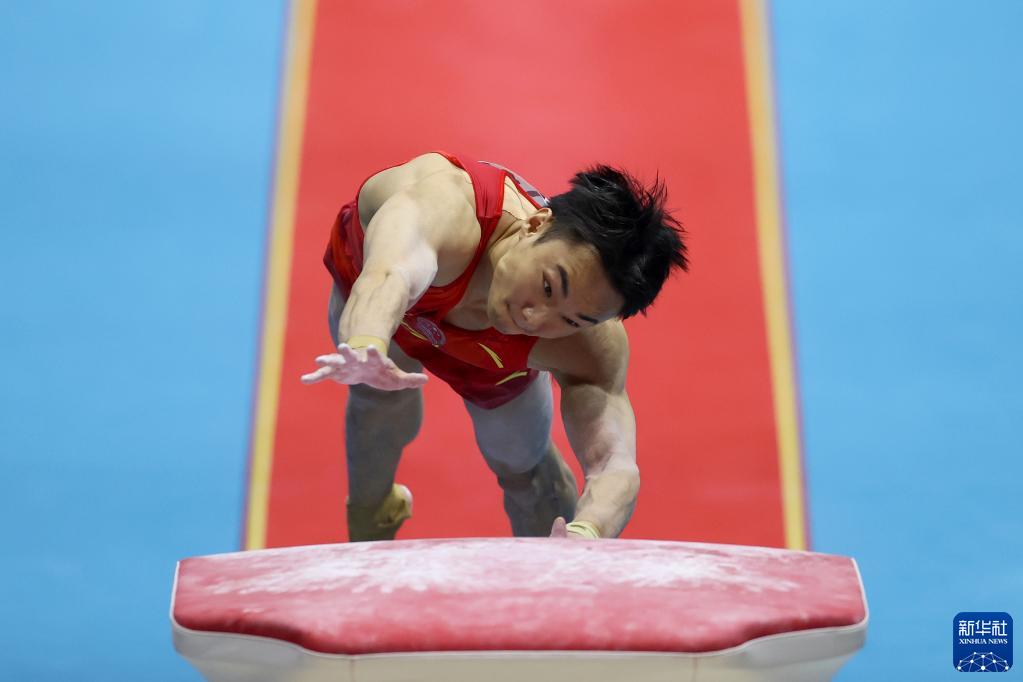 11月2日,中國隊選手孫煒在跳馬比賽中。