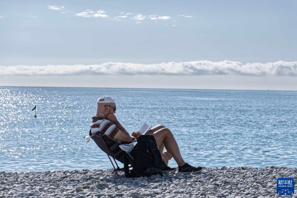 11月2日,一名男子在法國南部海濱城市尼斯的海邊休閑。