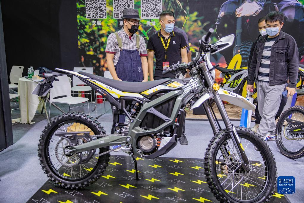 11月2日,在重慶國際博覽中心舉行的第二十屆中國摩博會(huì )現場(chǎng),觀(guān)眾參觀(guān)了解電動(dòng)摩托車(chē)。
