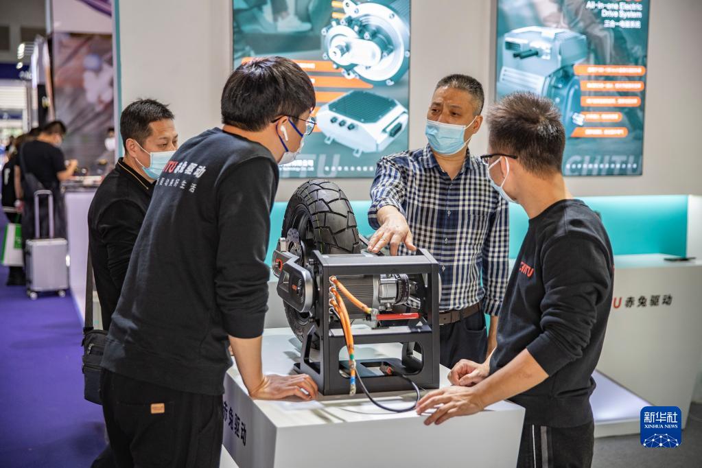 11月2日,在重慶國際博覽中心舉行的第二十屆中國摩博會(huì )現場(chǎng),觀(guān)眾參觀(guān)了解電驅系統。