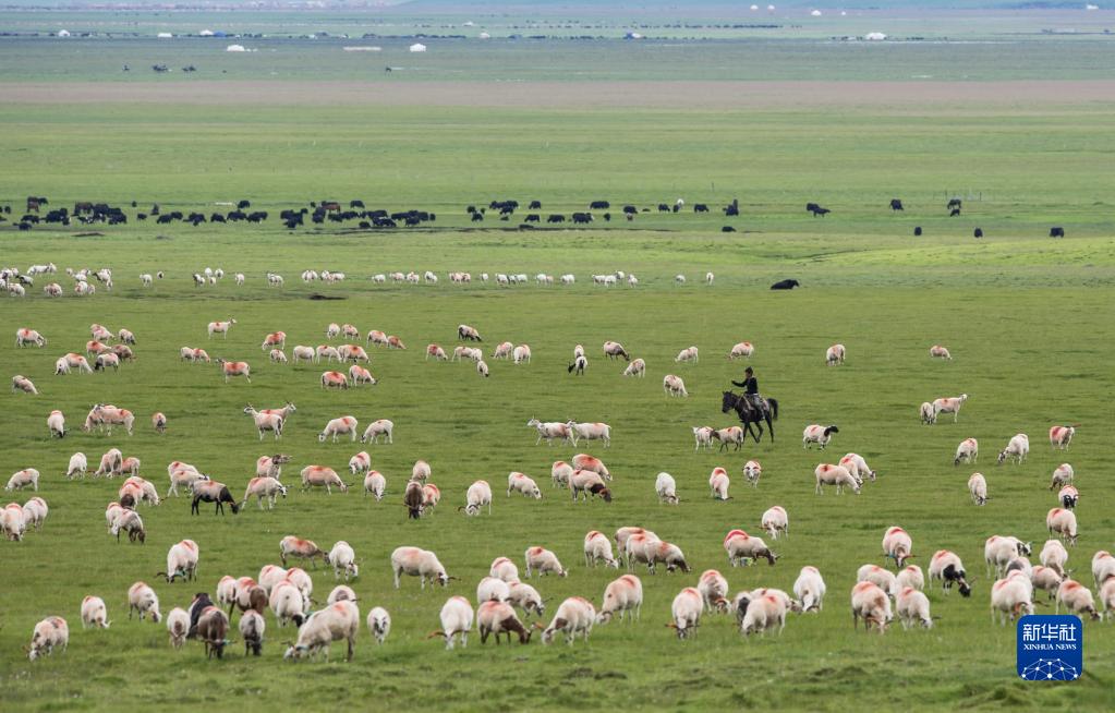 牛羊徜徉在四川若爾蓋濕地國家級自然保護區里(2022年7月25日攝)。
