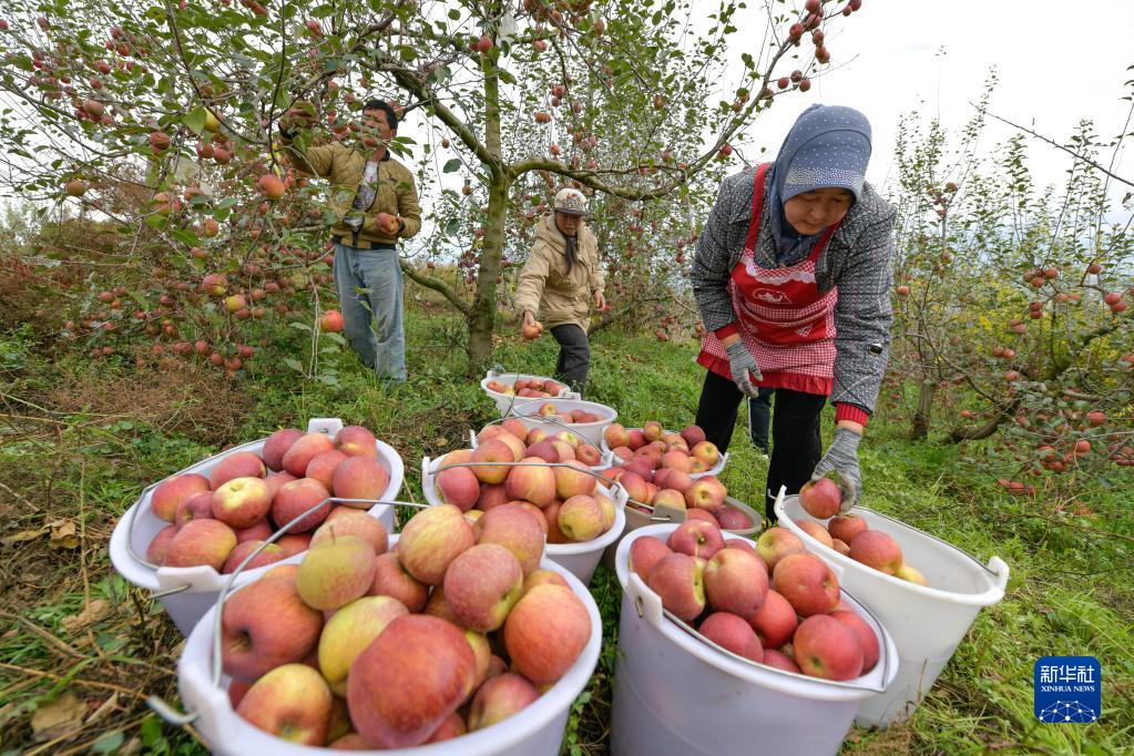 11月3日,果農在貴州省威寧縣牛棚鎮一處蘋(píng)果園里采摘蘋(píng)果。