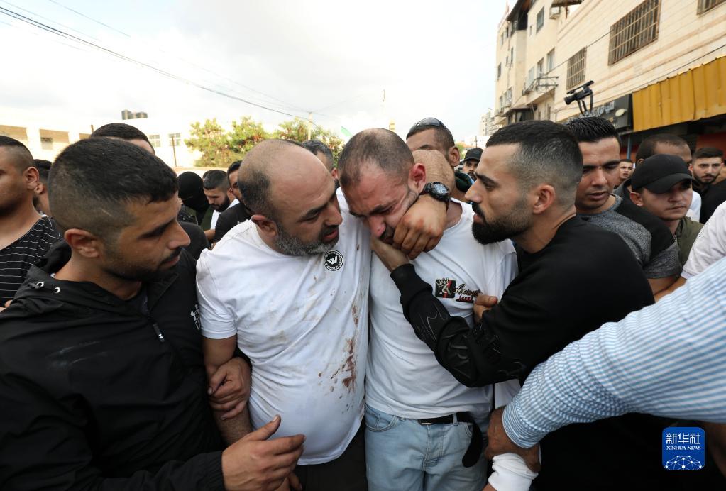 11月3日,在約旦河西岸北部城市杰寧,人們參加被以色列軍隊打死的巴勒斯坦人的葬禮。