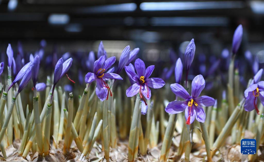 11月4日拍攝的建德市三都鎮圣江村圣火農業(yè)西紅花基地智能化育花大棚里的西紅花。