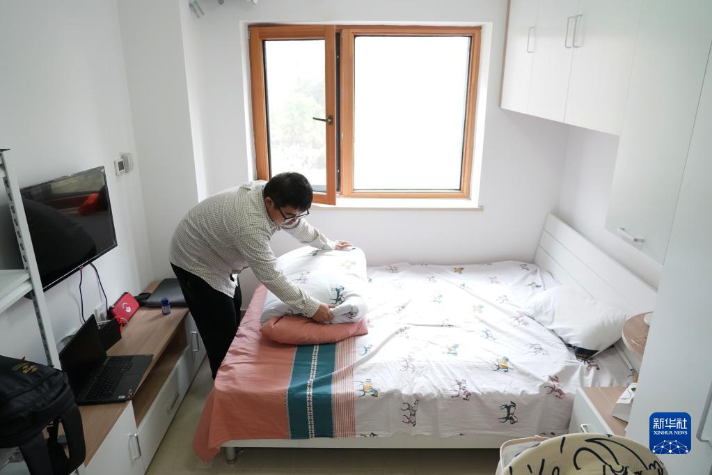 在金隅·山樾嘉園小區,北京科技大學(xué)應屆畢業(yè)生石全在居住的青年公寓內生活(10月23日攝)。