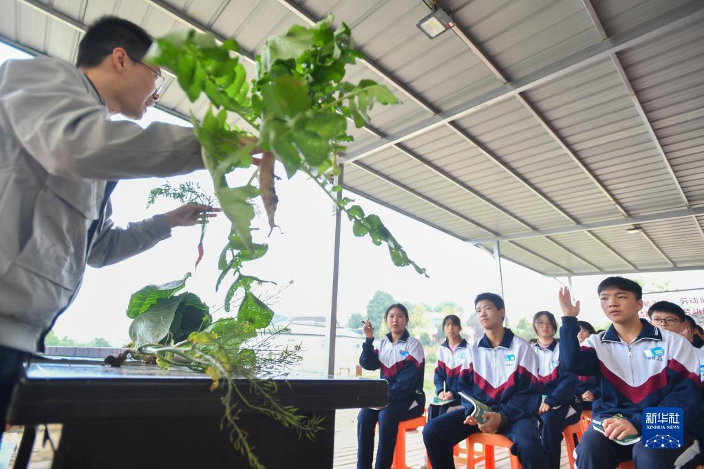 11月4日,在長(cháng)沙市天心區明德啟南中學(xué),學(xué)生們在上勞動(dòng)課時(shí)學(xué)習蔬菜的知識。