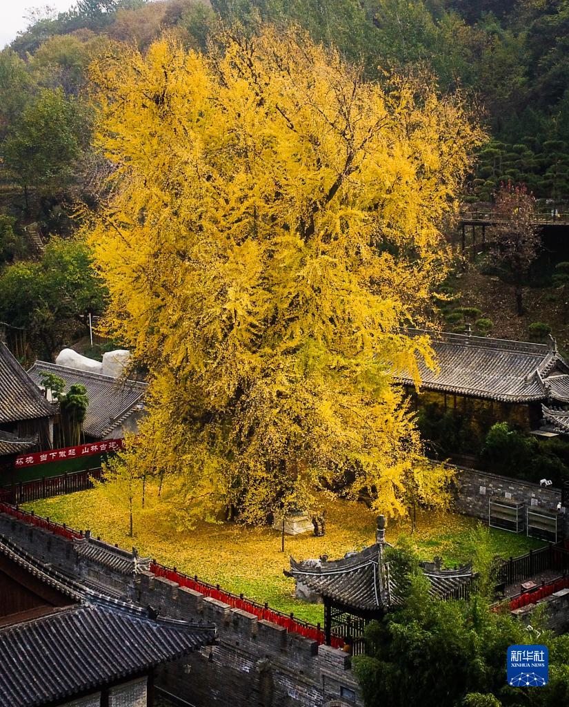這是西安市長(cháng)安區羅漢洞村終南山古觀(guān)音禪寺內的千年銀杏樹(shù)。