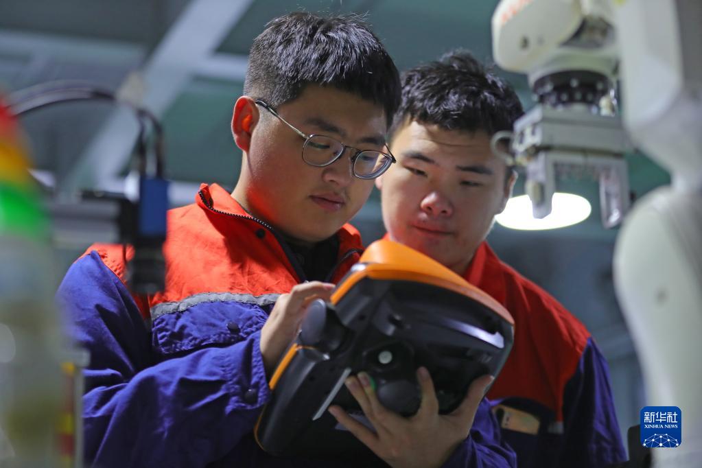 11月2日,在沈陽(yáng)工學(xué)院工業(yè)機器人實(shí)訓中心,機器人工程專(zhuān)業(yè)學(xué)生進(jìn)行工業(yè)機器人基礎實(shí)踐應用操作。
