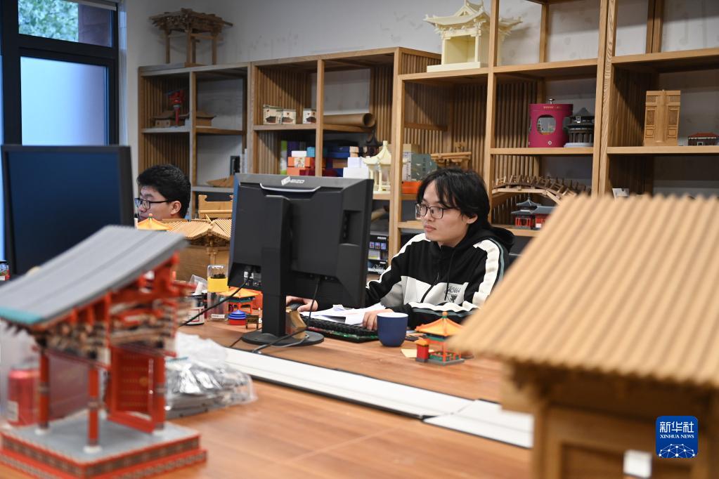 11月4日,一家入駐大運河1986文創(chuàng )園的企業(yè)員工在設計中國古建筑積木產(chǎn)品。