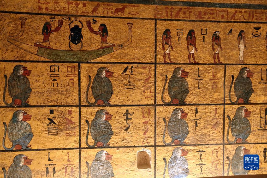 這是11月4日在位于埃及盧克索帝王谷的圖坦卡蒙墓內拍攝的壁畫(huà)。