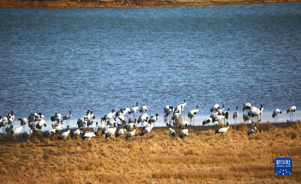云南大山包黑頸鶴國家級自然保護區管護局最新監測發(fā)現,越冬黑頸鶴近日陸續飛抵該保護區大海子濕地,截至11月1日已達百余只,這意味著(zhù)該保護區已開(kāi)啟新的黑頸鶴越冬季。新華社發(fā)(吳太平 攝)