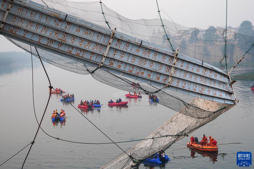 10月30日晚,位于古吉拉特邦莫比地區默丘河上的一座拉索橋突然斷裂,導致數百人落水,其中包括不少婦女和兒童?!队《瓤靾蟆?1月1日報道說(shuō),事故死亡人數已升至135人,另有近百人受傷。