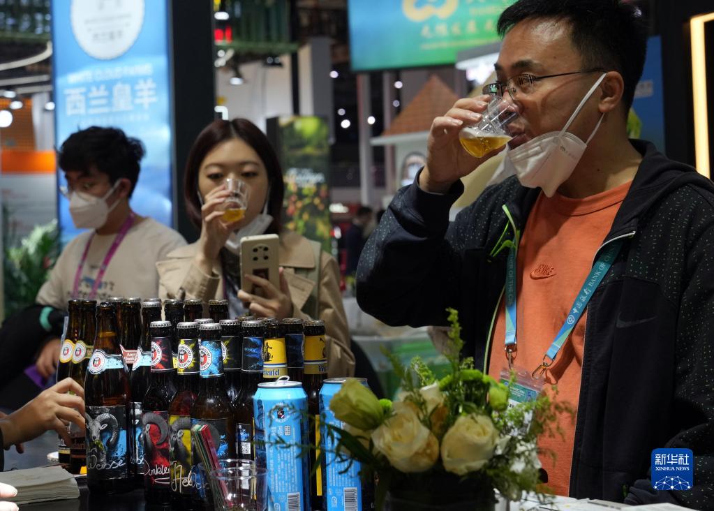 11月5日,觀(guān)眾在第五屆進(jìn)博會(huì )食品及農產(chǎn)品展區品嘗精釀啤酒。