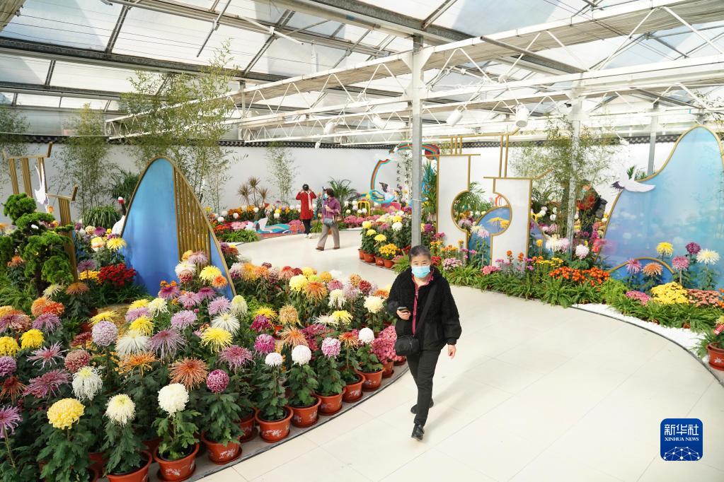 11月5日,游人在北京世界花卉大觀(guān)園觀(guān)賞菊花。 新華社記者 任超 攝