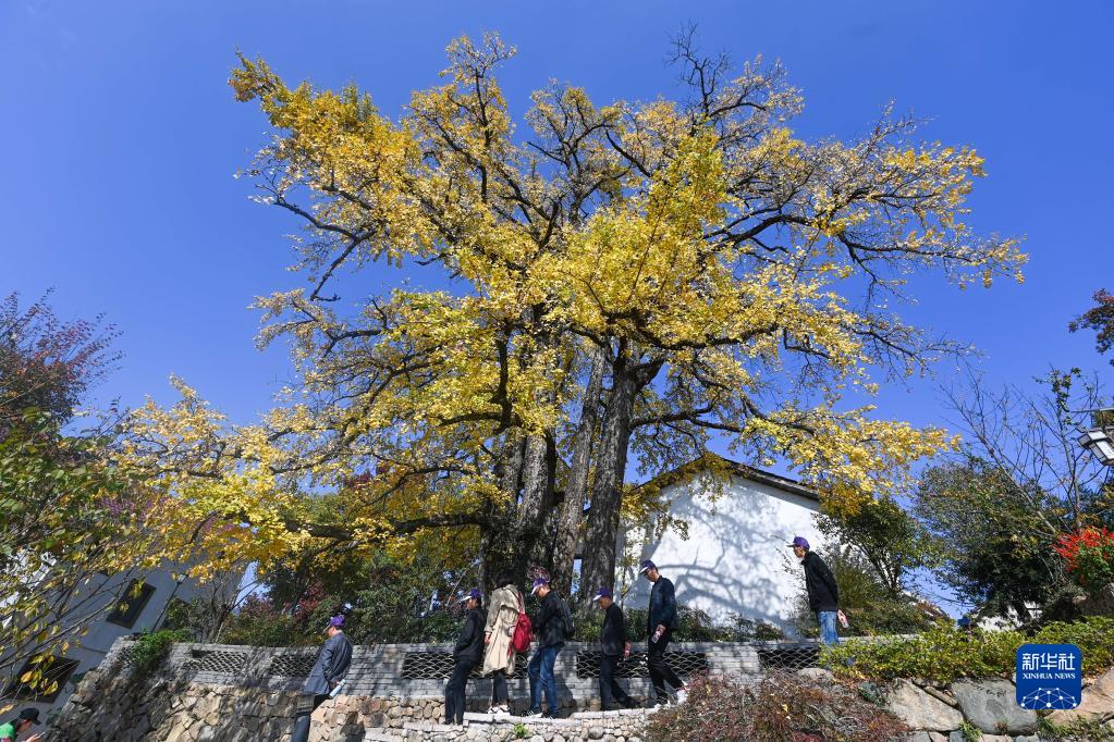11月5日,游客在指南村的古銀杏樹(shù)下觀(guān)賞秋色。