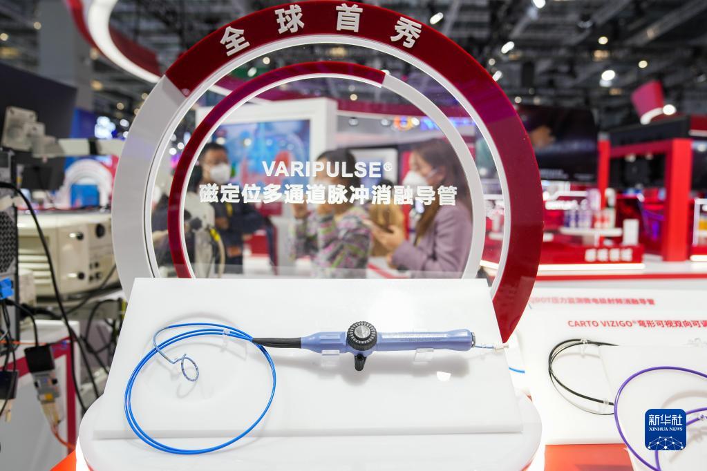 11月5日在第五屆進(jìn)博會(huì )醫療器械及醫藥保健展區拍攝的一款磁定位多通道脈沖消融導管。