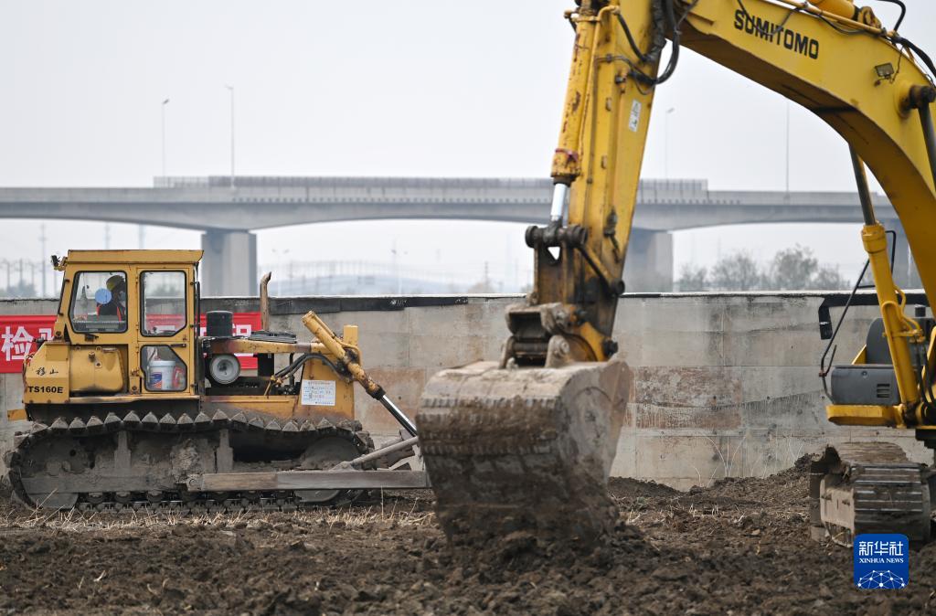 11月6日,在天津市濱海新區濱海西站,工程車(chē)輛在施工作業(yè)。
