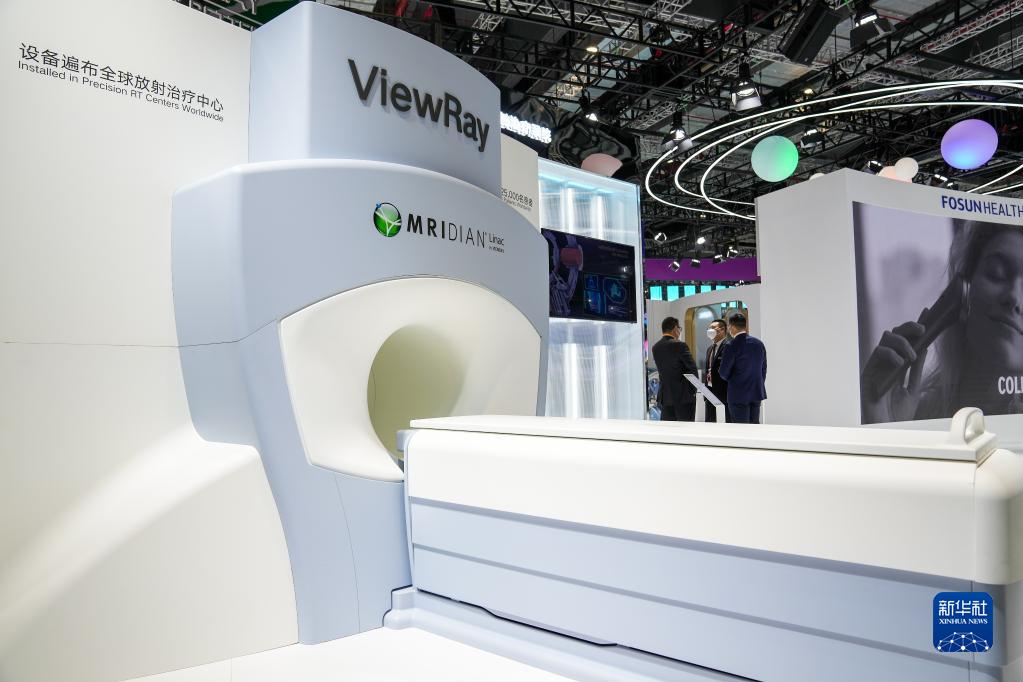 11月6日在第五屆進(jìn)博會(huì )醫療器械及醫藥保健展區復星展臺拍攝的磁共振引導放射治療系統。