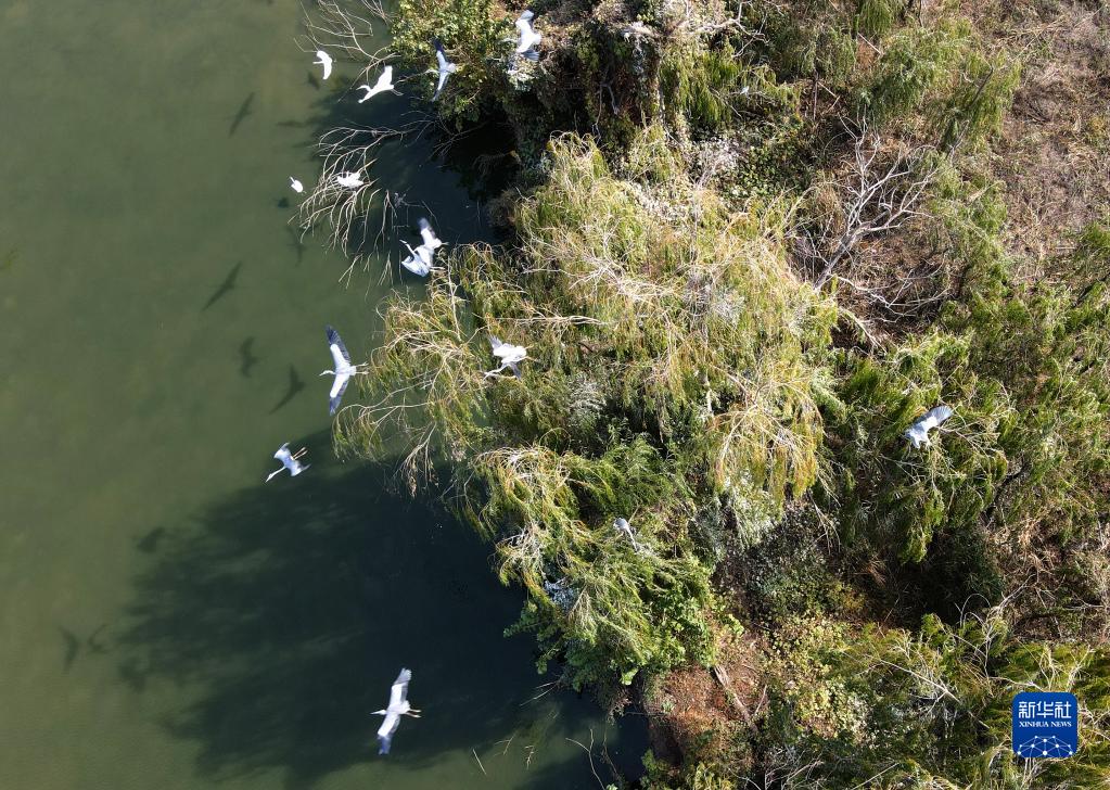11月5日在安徽巢湖半島國家濕地公園內拍攝的蒼鷺(無(wú)人機照片)。