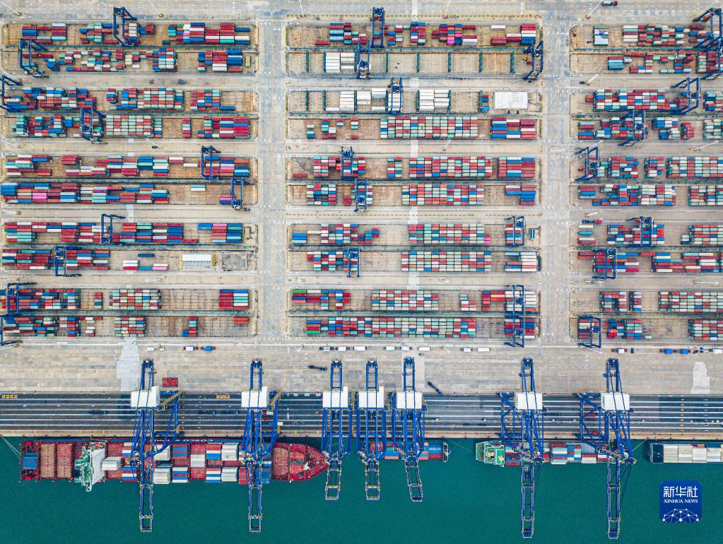 這是海南洋浦國際集裝箱碼頭(無(wú)人機照片,11月5日攝)。