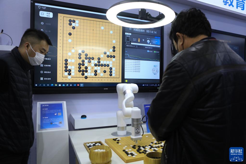 11月7日,參會(huì )人員體驗玄機弈棋機器人。