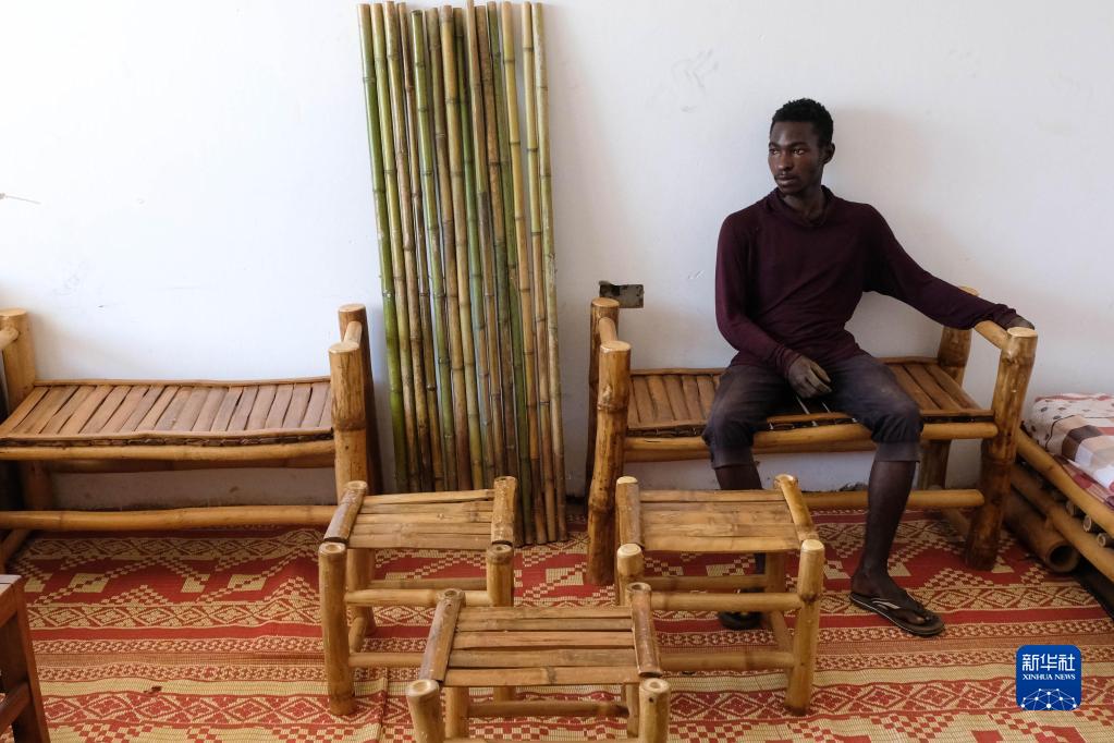 10月26日,在烏干達首都坎帕拉,烏干達竹子協(xié)會(huì )的工作人員展示竹椅。