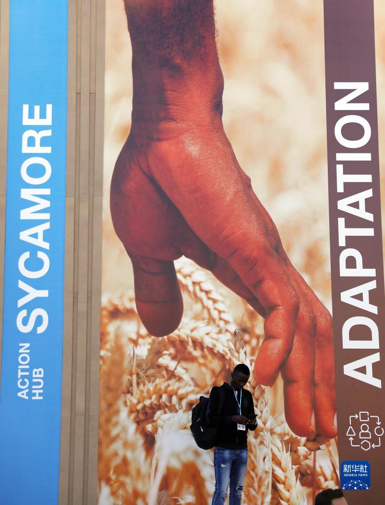 11月7日,在埃及沙姆沙伊赫的聯(lián)合國氣候變化大會(huì )舉辦場(chǎng)地,一名參會(huì )者站在一張宣傳海報前。