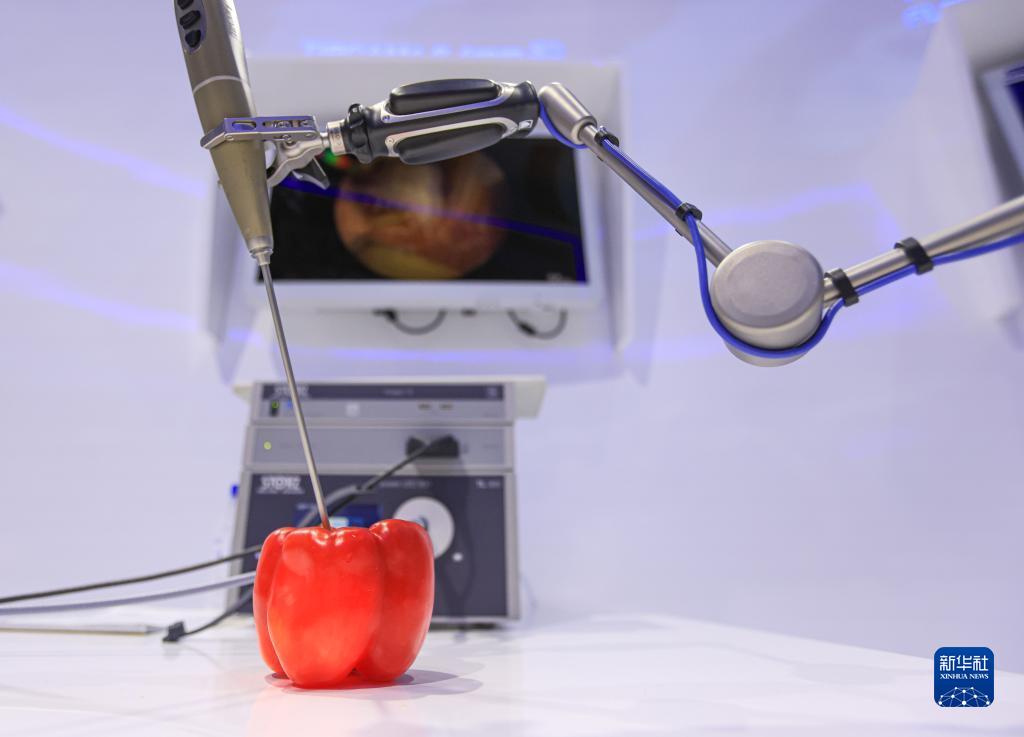 11月7日在第五屆進(jìn)博會(huì )德國卡爾史托斯展臺拍攝的電子內窺鏡。
