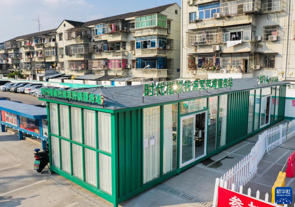 11月8日拍攝的位于慈溪市滸山街道金山社區的“時(shí)代楷?!卞X(qián)海軍勞模服務(wù)站(無(wú)人機照片)。