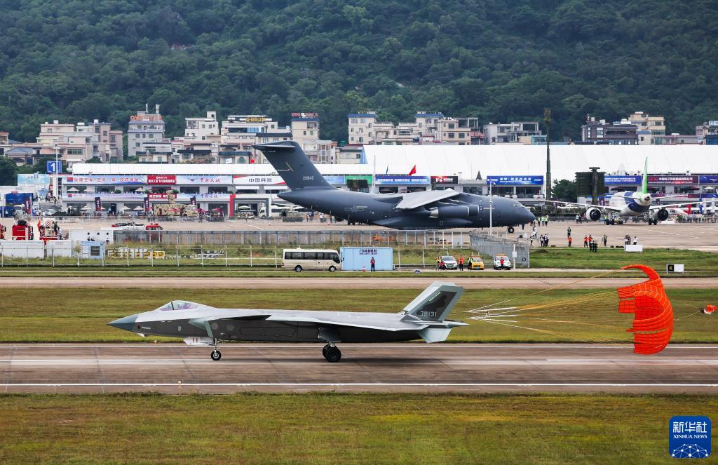 11月8日,在第十四屆中國航展進(jìn)行飛行表演的殲-20(前)降落珠海機場(chǎng)后從運油-20前滑過(guò)。