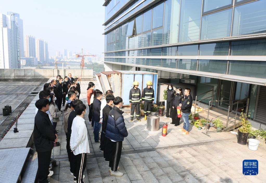 11月8日,在湖州市吳興區愛(ài)山街道一寫(xiě)字樓,應急管理人員帶領(lǐng)物業(yè)工作人員和部分業(yè)主參加消防安全演練。