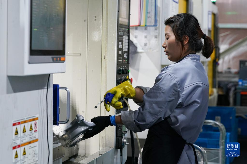 11月7日,在安徽省馬鞍山市含山縣三基輕合金成型科技有限公司,工人沖洗壓鑄好的鑄件。