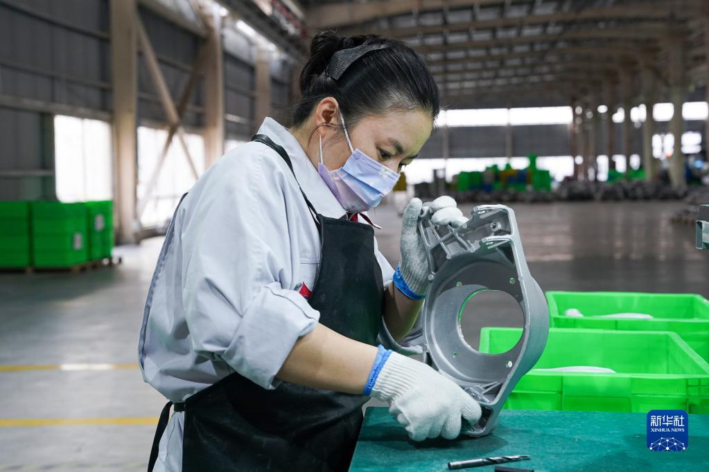 11月7日,在安徽省馬鞍山市含山縣三基輕合金成型科技有限公司,工人在檢查鑄件。