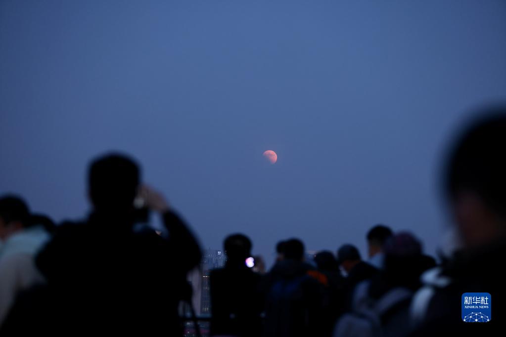 11月8日,人們在北京景山公園觀(guān)看月全食。