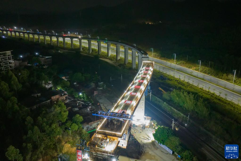 11月8日,清遠磁浮旅游專(zhuān)線(xiàn)長(cháng)隆特大橋跨京廣鐵路連續梁在轉體過(guò)程中(無(wú)人機照片)。