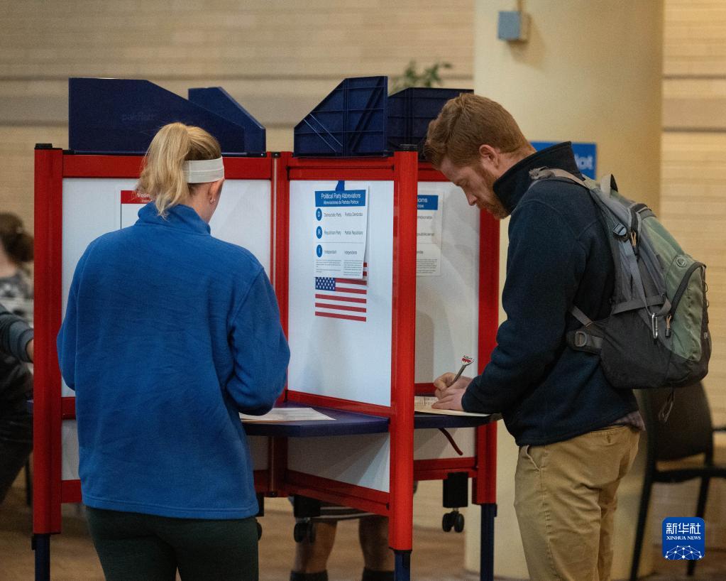 11月8日,選民在美國弗吉尼亞州阿靈頓的一處投票點(diǎn)參加中期選舉投票。