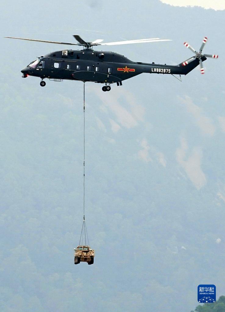 11月8日,陸軍某空中突擊旅直-8L戰機吊裝全地形車(chē)飛赴目標地域。