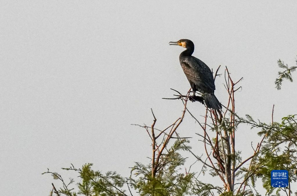 11月7日,在重慶市梁平區雙桂湖國家濕地公園,一只鸕鶿在樹(shù)梢休憩。