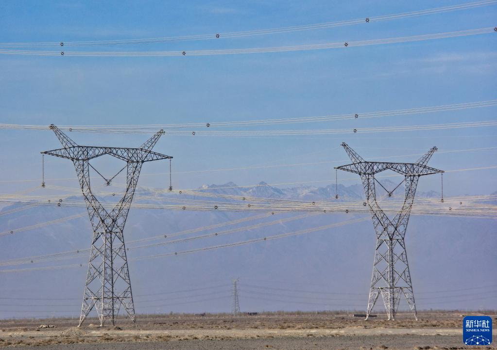 這是11月9日拍攝的新疆哈密至甘肅敦煌750千伏輸電線(xiàn)路(無(wú)人機照片)。