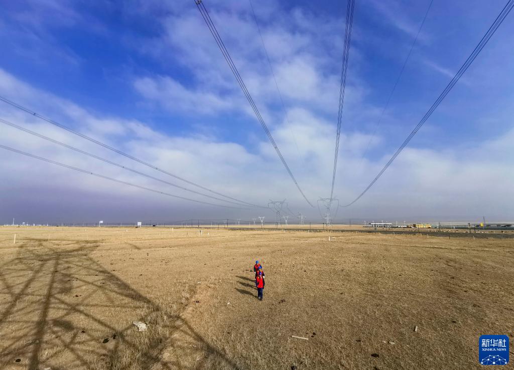 國網(wǎng)哈密供電公司運檢人員對跨越東天山的750千伏輸電線(xiàn)路進(jìn)行特巡(11月9日攝)。