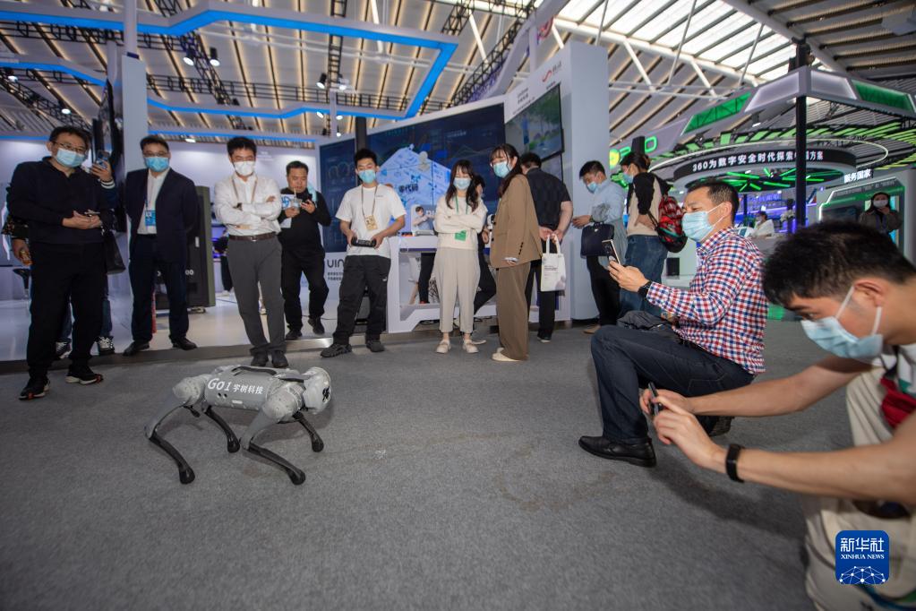 11月10日,觀(guān)眾在博覽會(huì )上參觀(guān)機器狗表演。
