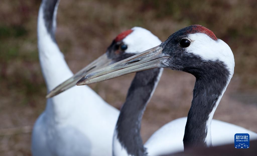 幾只馴養在鹽城濕地珍禽國家級自然保護區救護繁育中心的丹頂鶴在活動(dòng)(11月8日攝)。