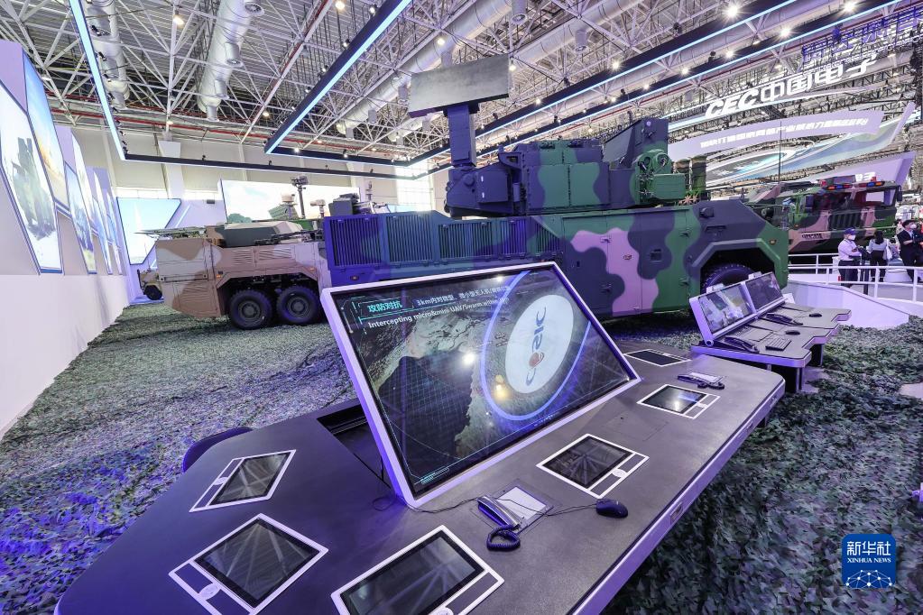 一套能對微型、微小型無(wú)人機蜂群戰術(shù)進(jìn)行攔截的反無(wú)人機系統亮相航展(11月9日攝)。