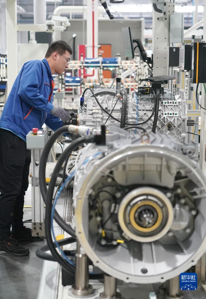 11月9日,工人在位于西安高新區的法士特高智新工廠(chǎng)項目車(chē)間內檢測變速器成品。