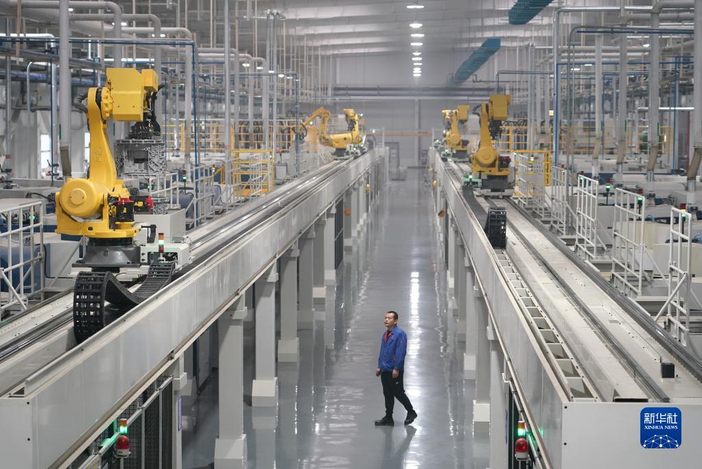 11月9日,工人在位于西安高新區的法士特高智新工廠(chǎng)項目車(chē)間內查看零件數字化生產(chǎn)線(xiàn)運行狀況。