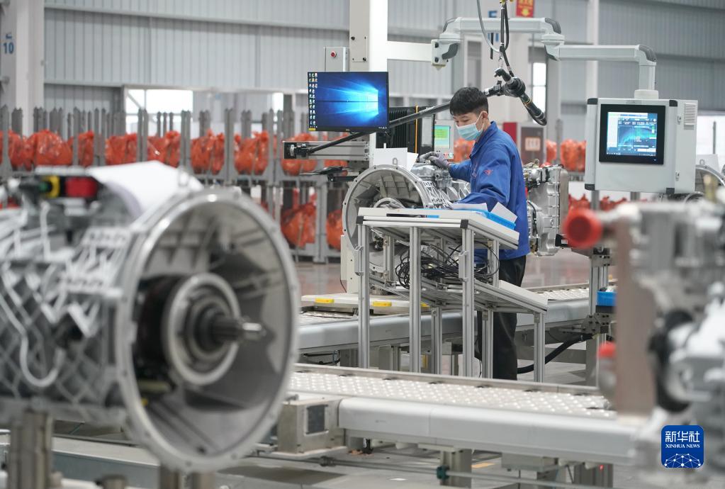 11月9日,工人在位于西安高新區的法士特高智新工廠(chǎng)項目車(chē)間內檢測變速器成品。