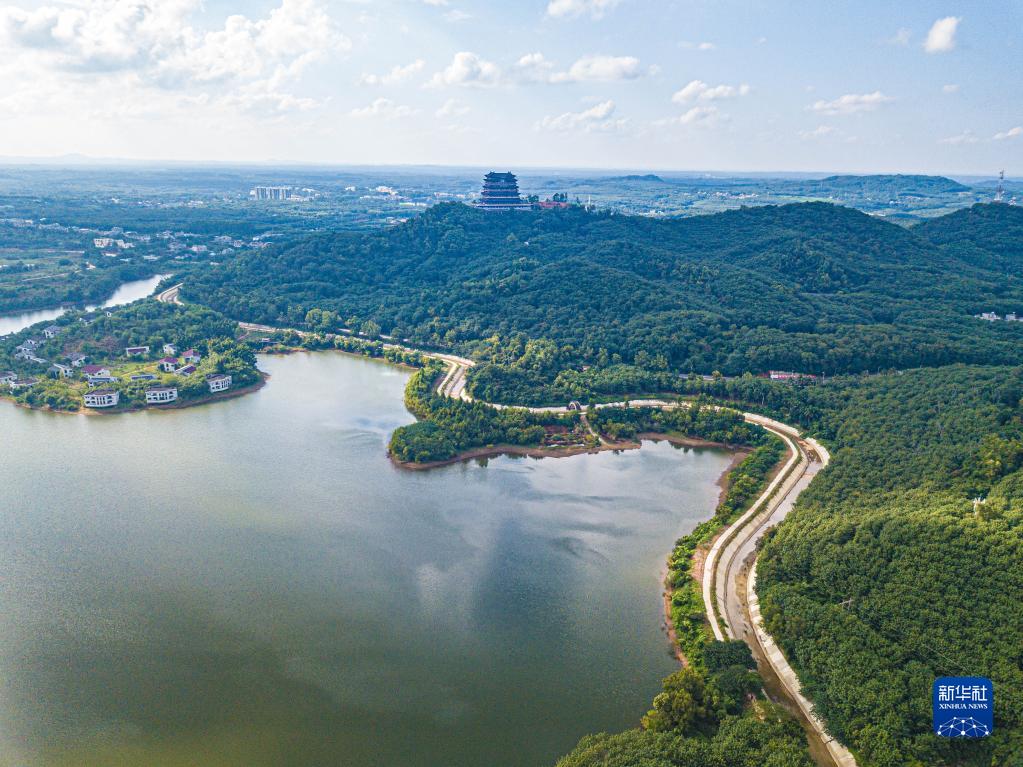11月10日在海南省儋州市拍攝的瓊西北供水工程明渠(無(wú)人機照片)。