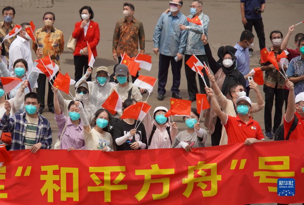11月10日,在印度尼西亞首都雅加達,人們歡迎中國海軍“和平方舟”號醫院船。