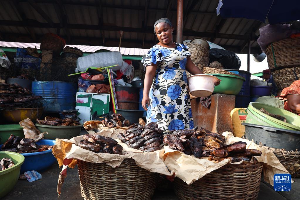11月10日,商販在加納首都阿克拉的市場(chǎng)上售賣(mài)貨物。