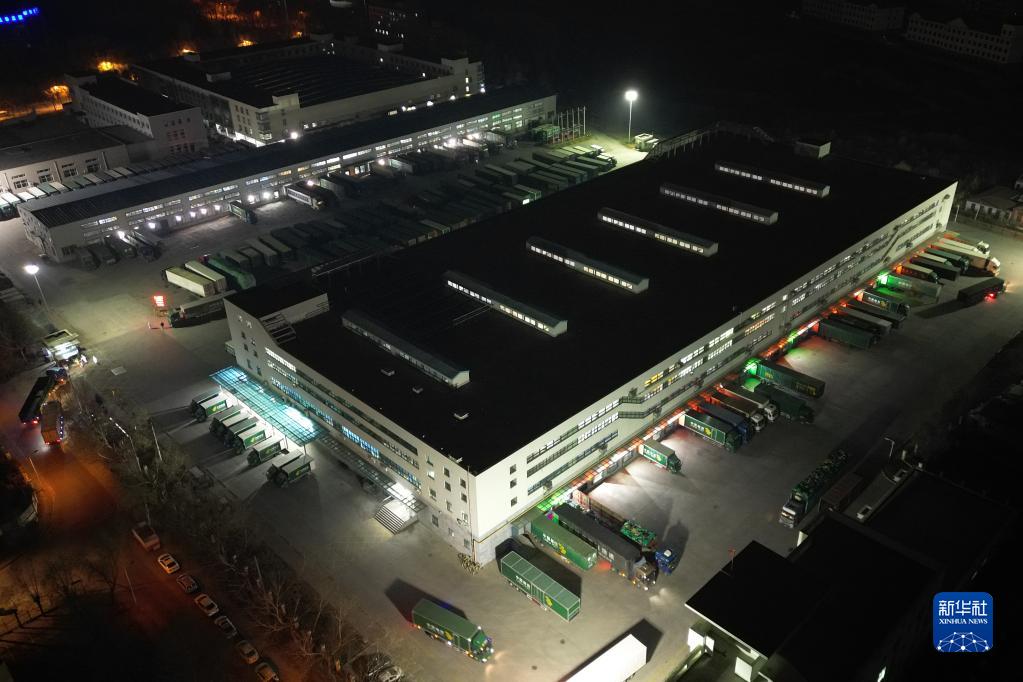 這是11月10日在中國郵政哈爾濱郵區中心局郵件處理中心拍攝的??康目爝f運輸車(chē)(無(wú)人機照片)。